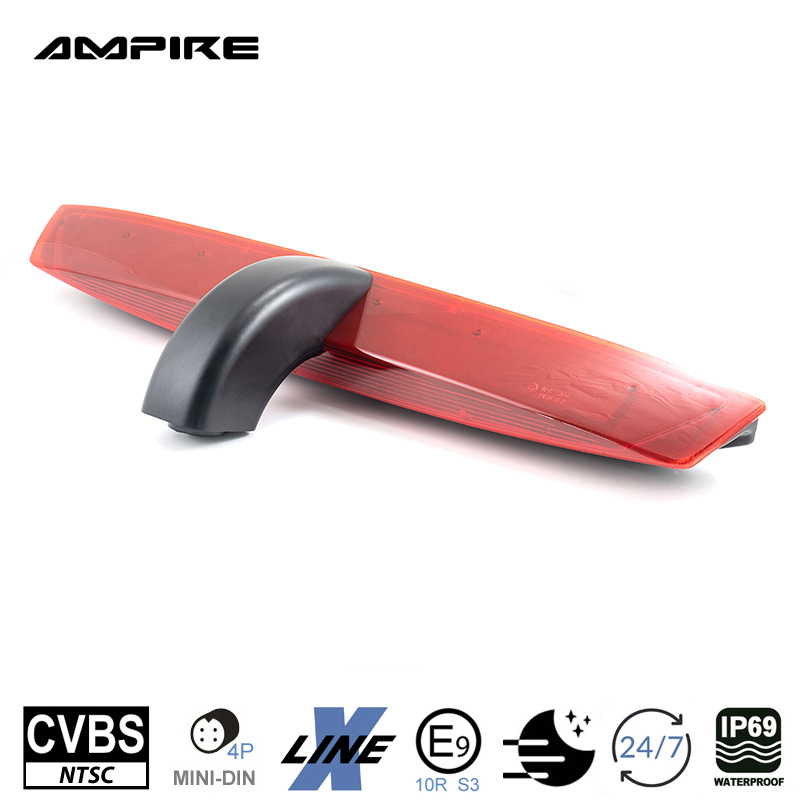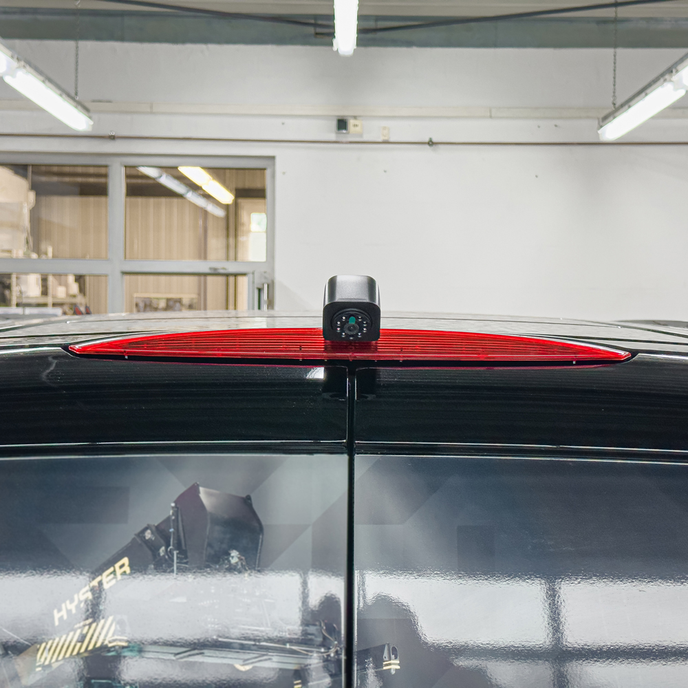 Fahrzeugspezifische CVBS (NTSC) Rückfahrkamera KVX-VITO-F für den Mercedes-Benz Vito 2016 (W447) bis 2022 mit Flügeltüren. Die KV-VITO-F wird gegen das werkseitige Bremslichtglas einfach ausgetauscht.