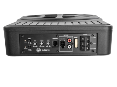 Der DLS ACW10 verfügt über einen supersteifen, profilierten 10-Zoll-Treiber mit einem Full-Flow-DLS-Gitter in einem versiegelten Aluminiumdruckgussgehäuse mit Wärmeableitungsrillen für den eingebauten 200-Watt-RMS-Klasse-D-Verstärker.