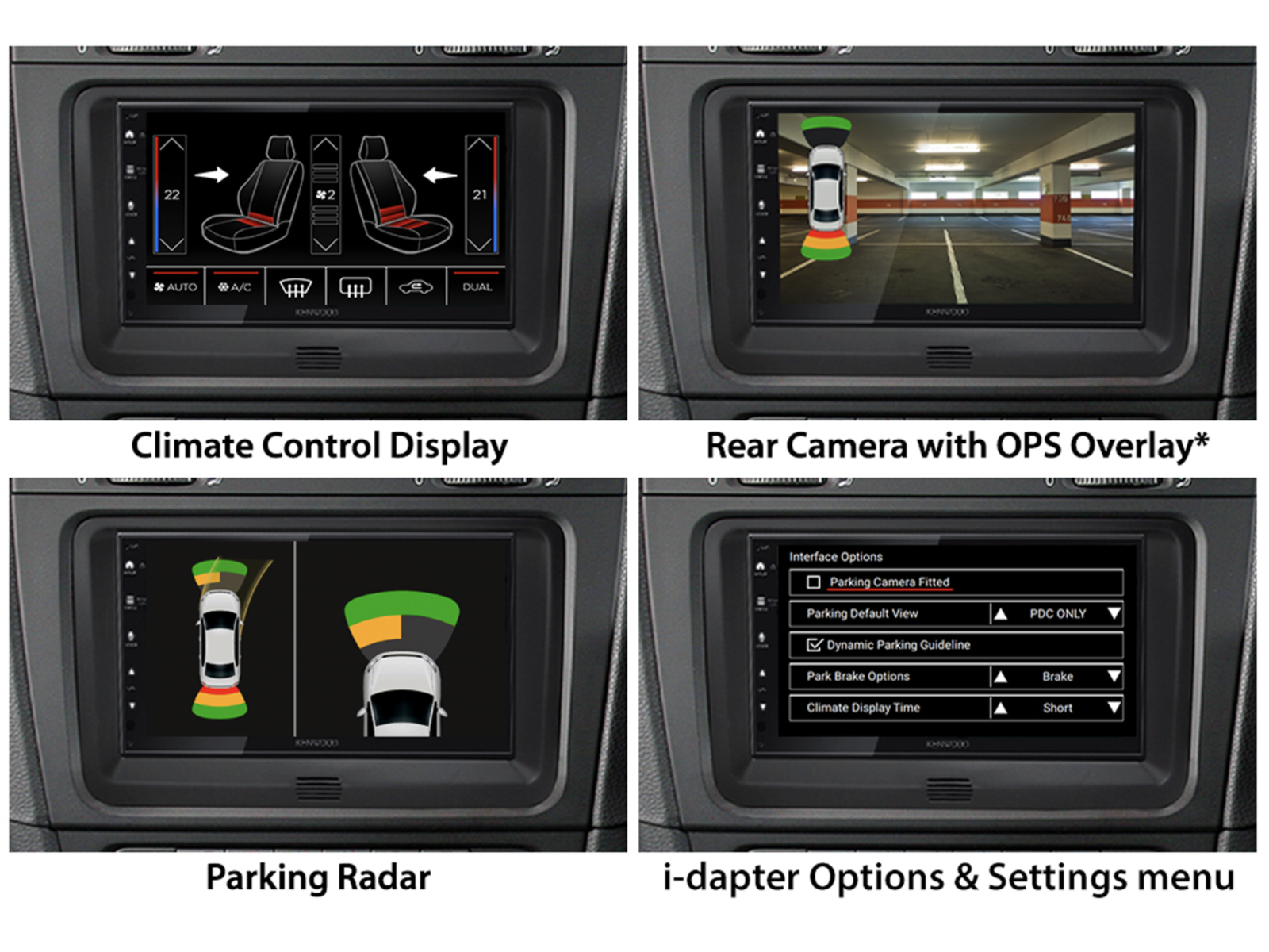 Durch den Infodapter wird beim Austausch des original Radios die optische Darstellung der Fahrzeugfunktionen, wie z.B. Parksensoren, Klimatisierung, Sitzheizung beibehalten.