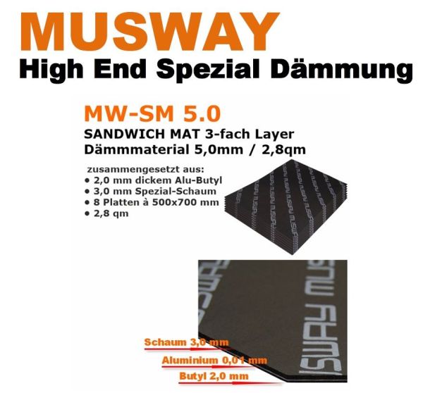 MUSWAY MW-SM 5.0 starkes Sandwich Spezial Dämmmaterial 5,0 mm