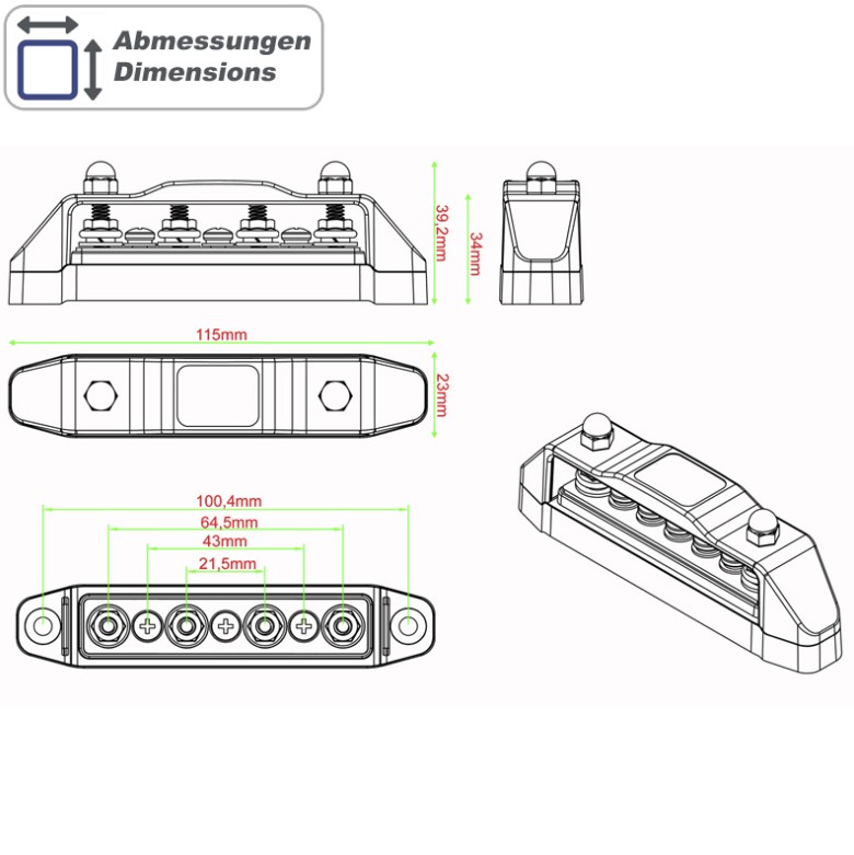 Weiterführende Links zu "Ampire BBS43 - Stromverteiler mit 7 Anschlüssen (4x M5)"