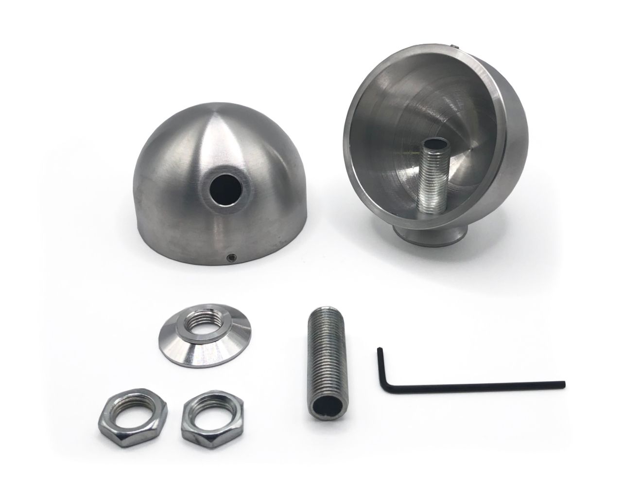 A small aluminum base completes the look. The threaded pin is hollow so that the tweeter cable can also be passed through there.