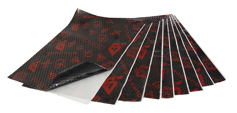 Das Aluminium-Butyl QRM18 besitzt bereits sehr gute Allround-Dämmeigenschaften. Mit seinen 1,8 mm Stärke ist es einfach zu verarbeiten und gut geeignet, um Türen oder auch Kofferräume zu dämmen. Wenn es die Oberfläche erlaubt, ist das 2,2 mm starke QRM22 mit einem Verlustfaktor (MLF = Mechanical Loss Faktor) von 0,35 eine noch bessere Wahl. Mit den besten Dämmeigenschaften wartet das geniale QRM30S auf. Mit 3,0 Millimetern Stärke und einem Verlustfaktor MLF von 0,5 stellt diese Razor Mat selbst problematische Stellen ruhig. Das Klangergebnis ist verblüffend: Wo vorher Fahrzeugteile „gerappelt“ und „gescheppert“ haben, herrscht nach dem Aufbringen des QRM30S absolute Stille. Nur was der Lautsprecher wiedergeben soll ist zu hören. Auch wenn mal etwas lauter gehört wird, ist nur der klare Sound aus den Lautsprechern präsent.