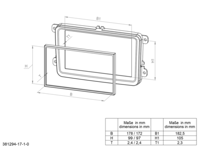 Installation cutout radio display: 178mm x 99mm