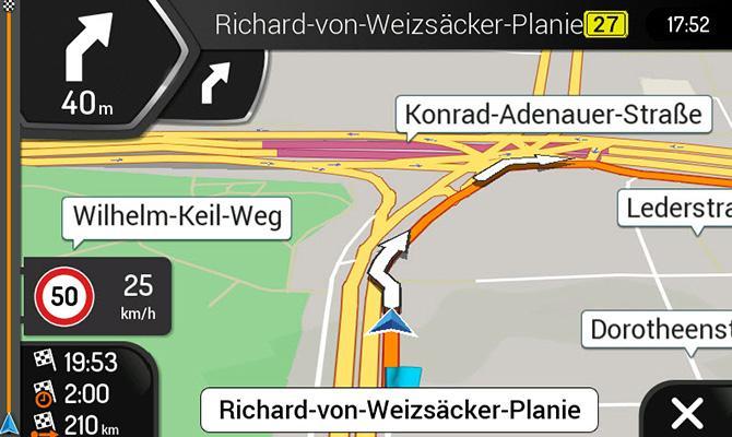 - 3-D auto-zoom at intersections and rotors, Lane Assistant with display of highway traffic signs