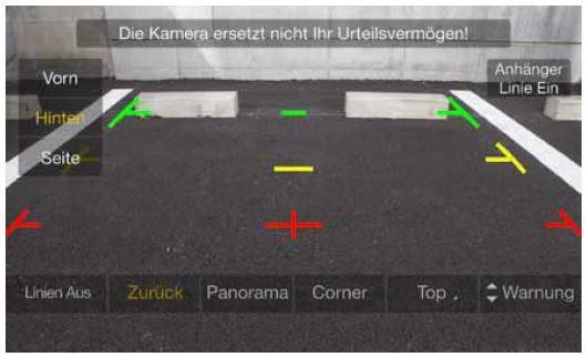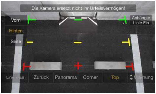 - When reverse gear is engaged, the camera is automatically activated and you can choose between four display modes and a trailer guidance line can also be switched on separately.