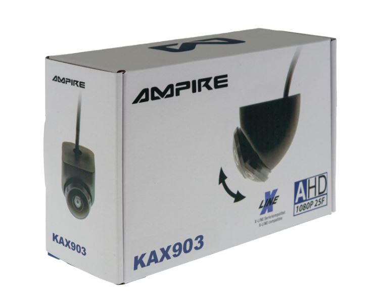 The KAX903 This miniature under-mount camera is a high-resolution AHD/CVBS camera with unlimited applications in cars, buses, motorhomes, trucks, or trailers as a front or rear-view camera. The matte black plastic housing is particularly weather-resistant, IP69K waterproof, and very robustly constructed. Two different guide lines (narrow/wide) can be optionally superimposed on the video signal to assist the viewer with parking. The camera comes complete with an 8-meter extension cable with high-quality copper strands.