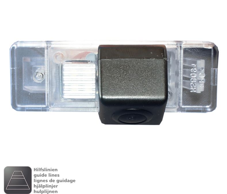 Mini camera with vehicle-specific license plate light glass with LED. Simple assembly by exchanging for the factory license plate light. Professional system cable set in sufficient length and with automotive plug connections. Thanks to the plug with a small diameter, the cable is easier to lay. Additional wire for signal transmission, e.g. power supply or reversing signal. With distance lines that can be switched off.