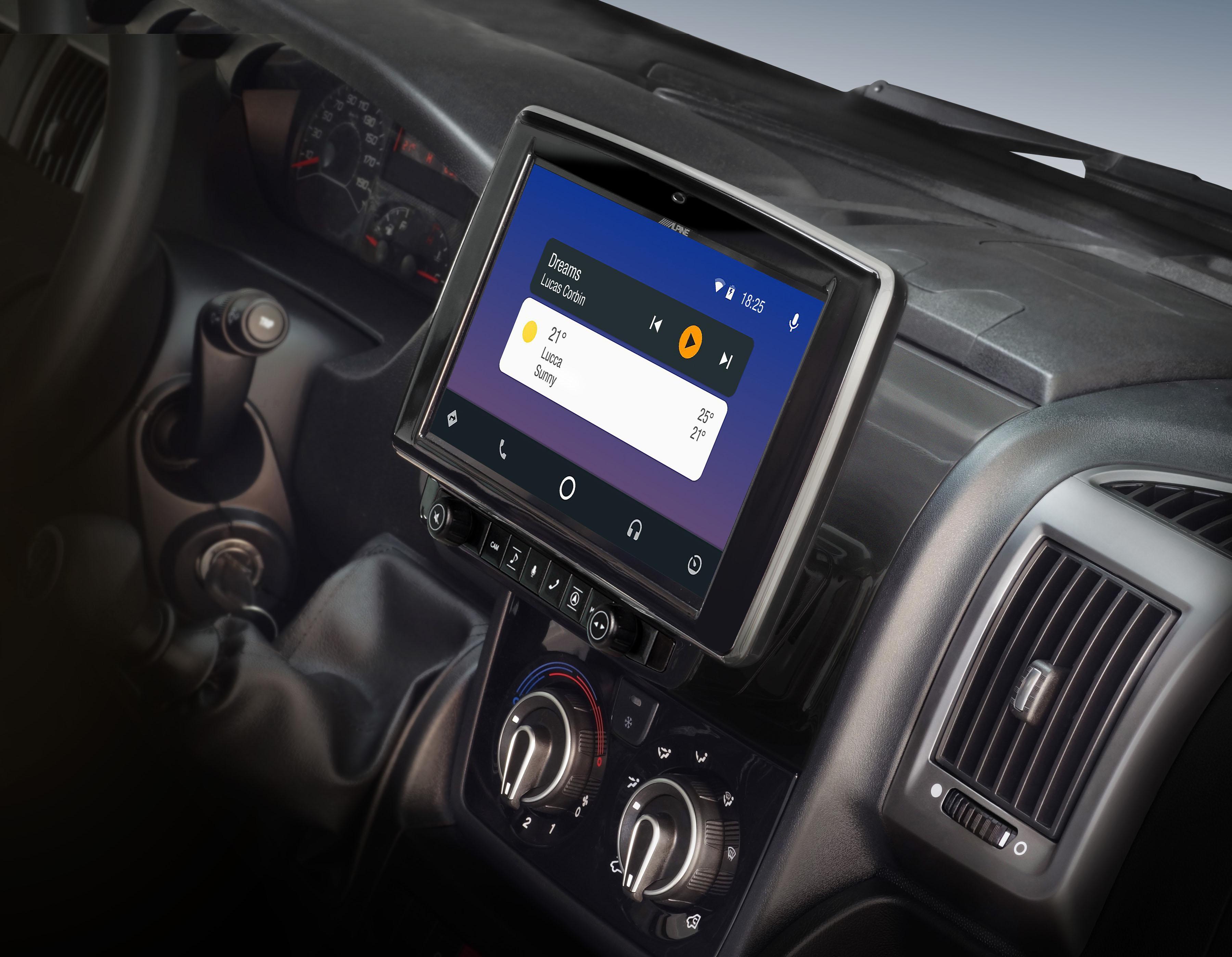 If your Ducato is equipped with steering wheel buttons, you can continue to use them with the X903D-DU. The Alpine Style system is fully connected to the vehicle electronics and takes over all steering wheel control commands such as volume, telephone, voice control and mute. This is another feature that contributes to the comfort and driving safety in your motorhome.