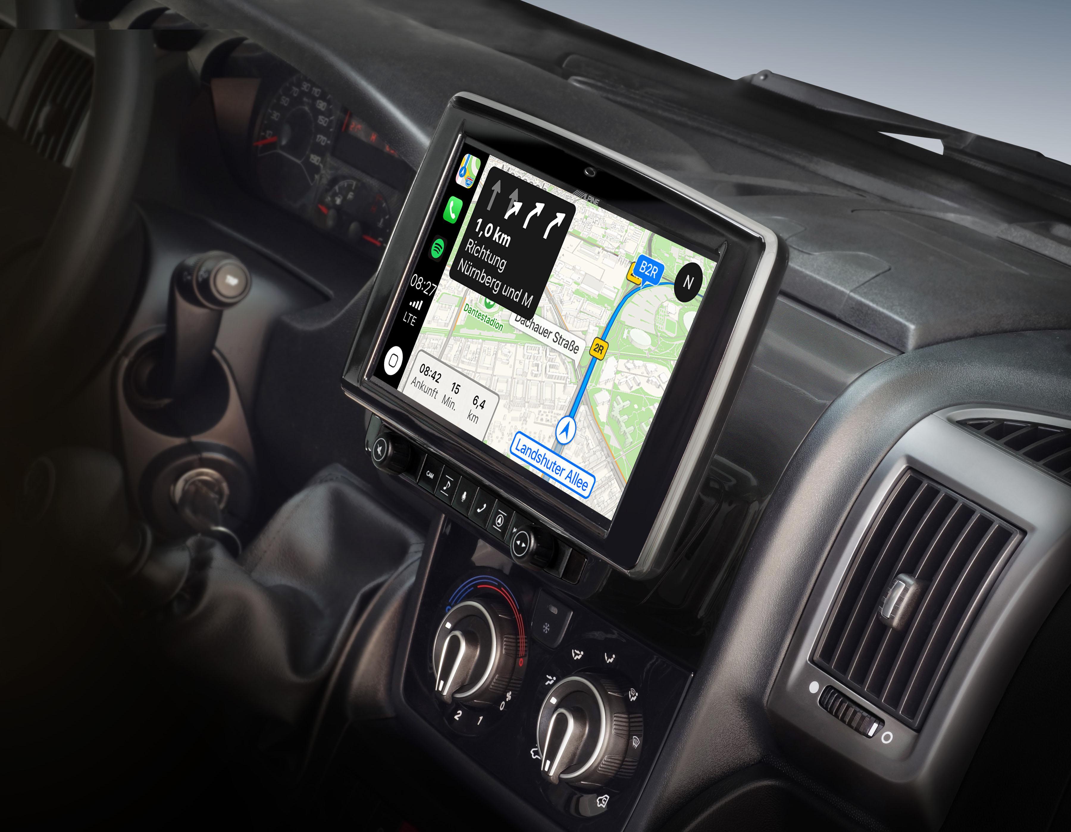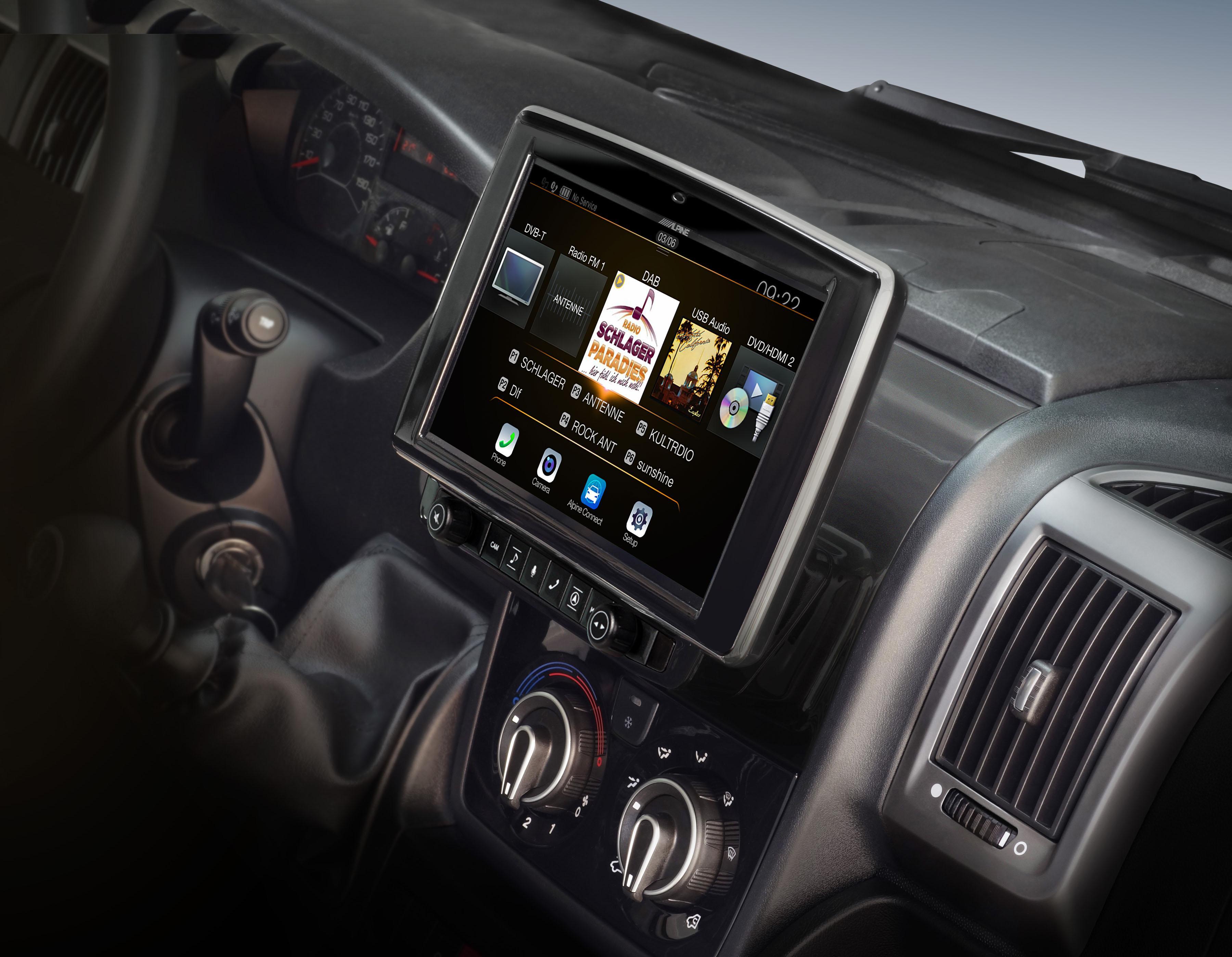 Ease of access is an important factor, especially on long journeys when you often want to change radio stations or change navigation settings. The Alpine Style system is a great tablet solution on the dashboard and brings the display much closer to the user. This makes the device easy to operate without having to bend forward. In addition to the touchscreen display, extra-large control buttons are available for easy access to the most important functions such as navigation, source selection, volume, telephone, and much more.