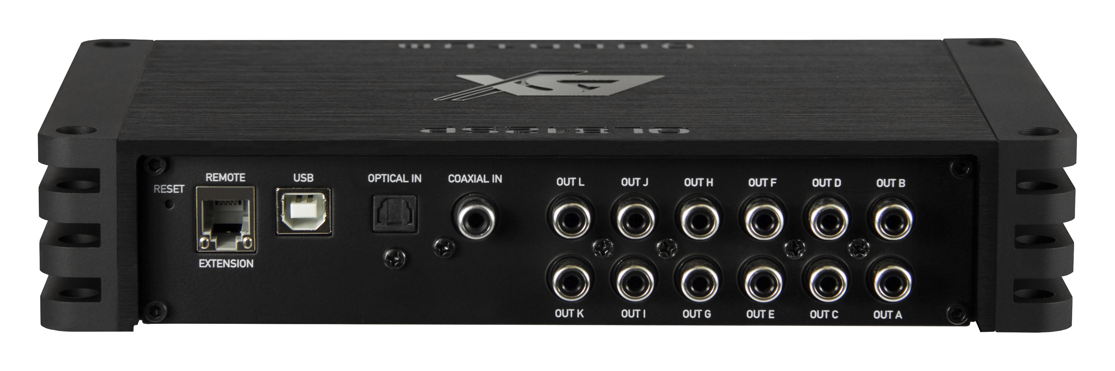 - 12 x RCA/cinch @ 6 V RMS (THD+N <0.0004%) with 31-band EQ, PEQ / high shelf /