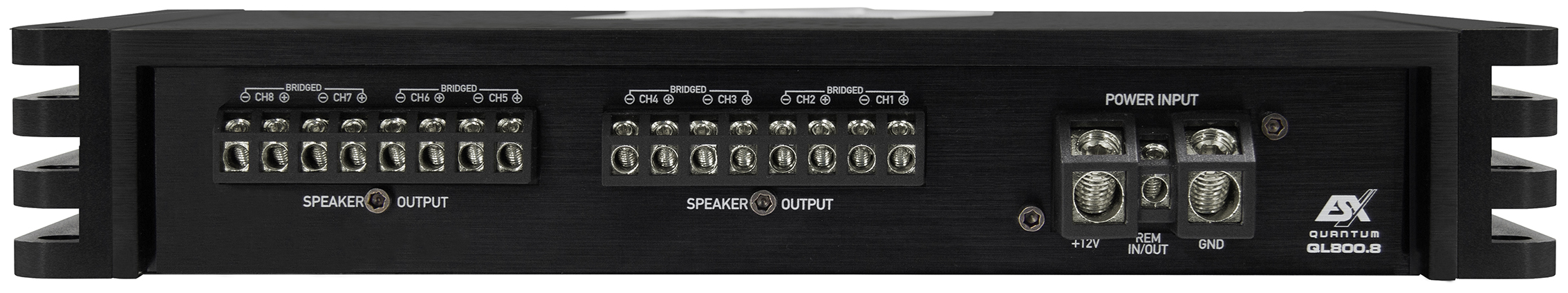 QUANTUM Class D amplifiers have been at the forefront of the ESX range for years. The range extends from the 4 x 300 watts RMS EISA Award-winning QE1200.4 to 1 ohm stable monoblocks and the palm-sized QS- TWO, which fits anywhere. The large selection allows for a wide range of possible combinations. But that's not all: ESX is now expanding the Quantum range with two additional Class D multi-channel power amplifiers, which offer a rich 6 x or 8 x 125 watts RMS at 2 ohms, top-quality sound, and state-of-the-art features.