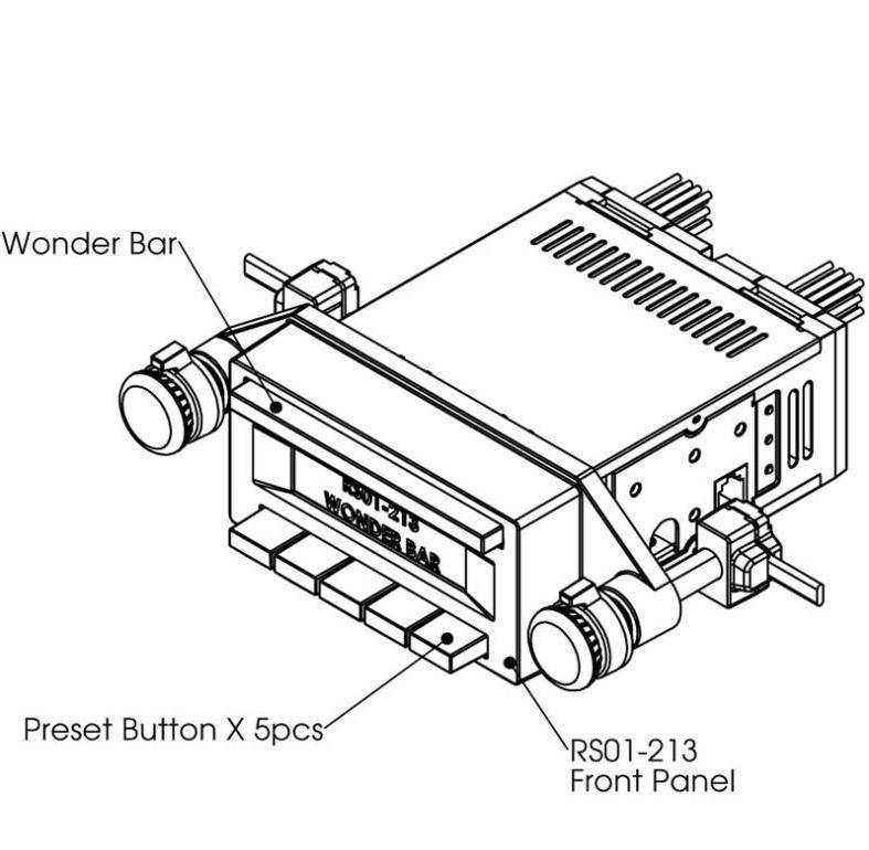 The RetroSound "Wonderbar" car radio is ordered and delivered in two components:the "MOTOR-3/6" radio module and the "FACE-WB1" or "FACE-WB3", which has a chrome-plated display unit with chrome-plated control buttons and the two The control buttons and control rings are not included in the delivery and must be ordered individually.The display unit fits in the various front panels and adapter frames from RetroSound.