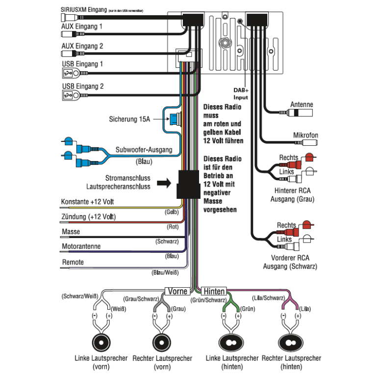 - 3 stereo RCA outputs for external amplifiers (front / rear / subwoofer)